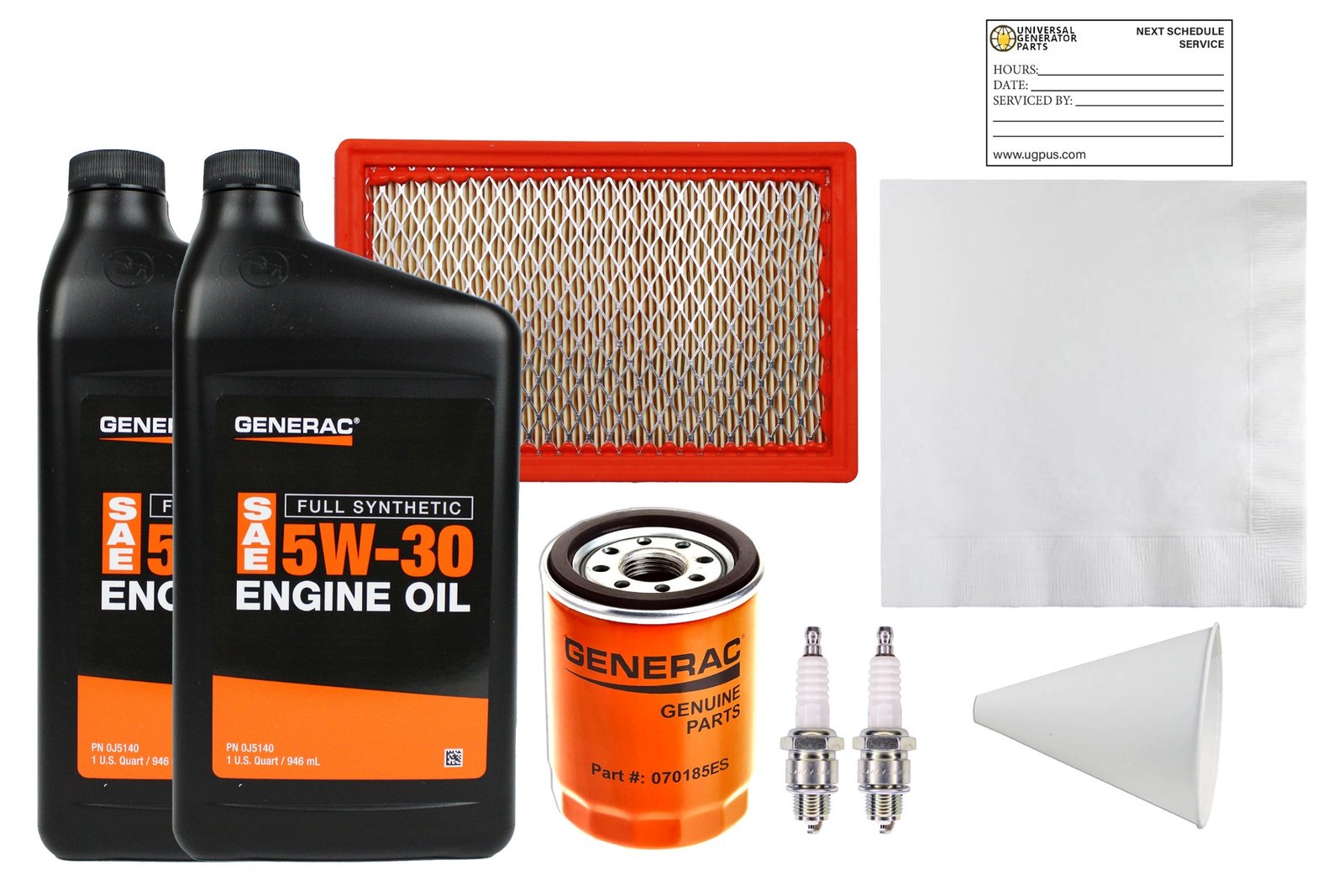 • GENERATOR REPLACEMENT PARTS: This generator parts kit includes 5w30 Synthetic Oil, air filter, oil filter, (2) spark plugs, paper funnel, oil wipe, and reminder sticker. The maintenance kit has everything you need for a complete service in one convenient package.
