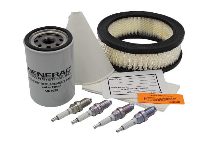 Scheduled maintenance is a necessity for all standby generators. The Liquid-Cooled Scheduled Maintenance Kits offer all the hardware necessary to perform a complete maintenance on Generac liquid-cooled generators. Oil and coolant will need to be purchased separately based upon manufacturer recommendations listed below. Maintenance is recommended at every 200 hours or 2 years. If running in a dusty environment, more frequent maintenance may be required. Further maintenance details can be found in the generator owner’s manual. Kit includes air filter, oil filter, 4 spark plugs, spark plug wrench, oil funnel, chamois, and reminder sticker.