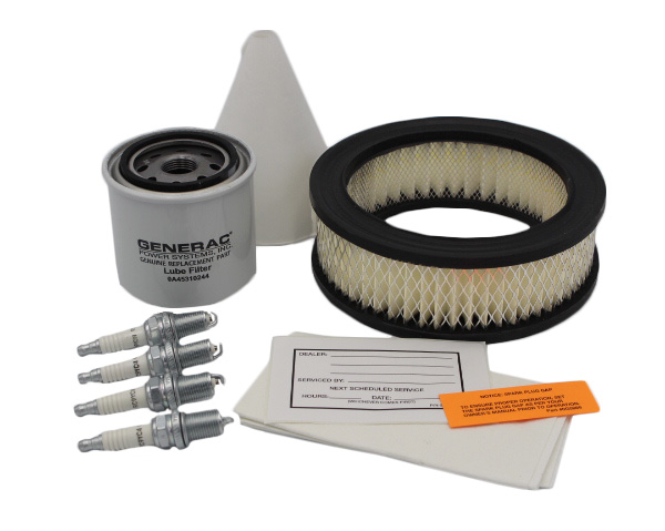 Scheduled maintenance is a necessity for all standby generators. The Liquid-Cooled Scheduled Maintenance Kits offer all the hardware necessary to perform a complete maintenance on Generac liquid-cooled generators. Oil and coolant will need to be purchased separately based upon manufacturer recommendations listed below. Maintenance is recommended at every 200 hours or 2 years. If running in a dusty environment, more frequent maintenance may be required. Further maintenance details can be found in the generator owner’s manual. Kit includes air filter, oil filter, 4 spark plugs, spark plug wrench, oil funnel, chamois, and reminder sticker.