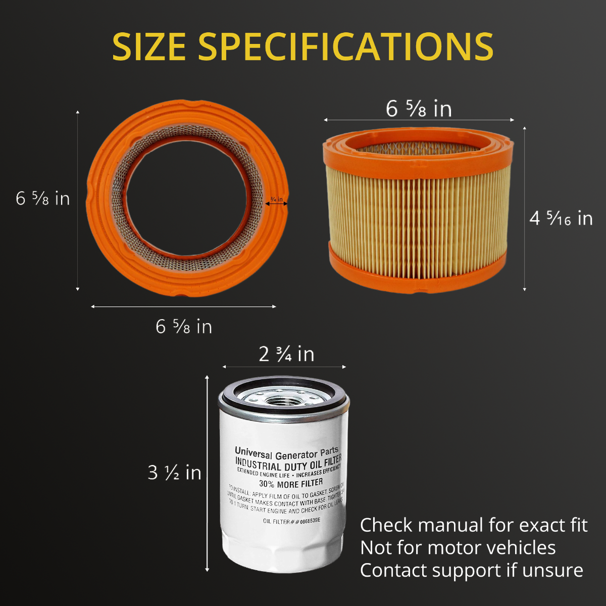 Generac Air Filter 0G5894 With UGP Oil Filter 0868539E 90mm