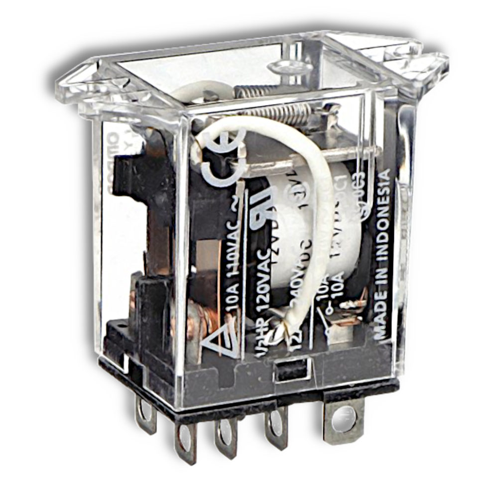 Omron LY2F-DC12 Industrial Automation Relay, DPDT, 12VDC Coil, 15A Contact Rating, 120VAC/28VDC Load, Plug-In Mount, General Purpose, Power Relay, LY2 Series, Mechanical Indicator