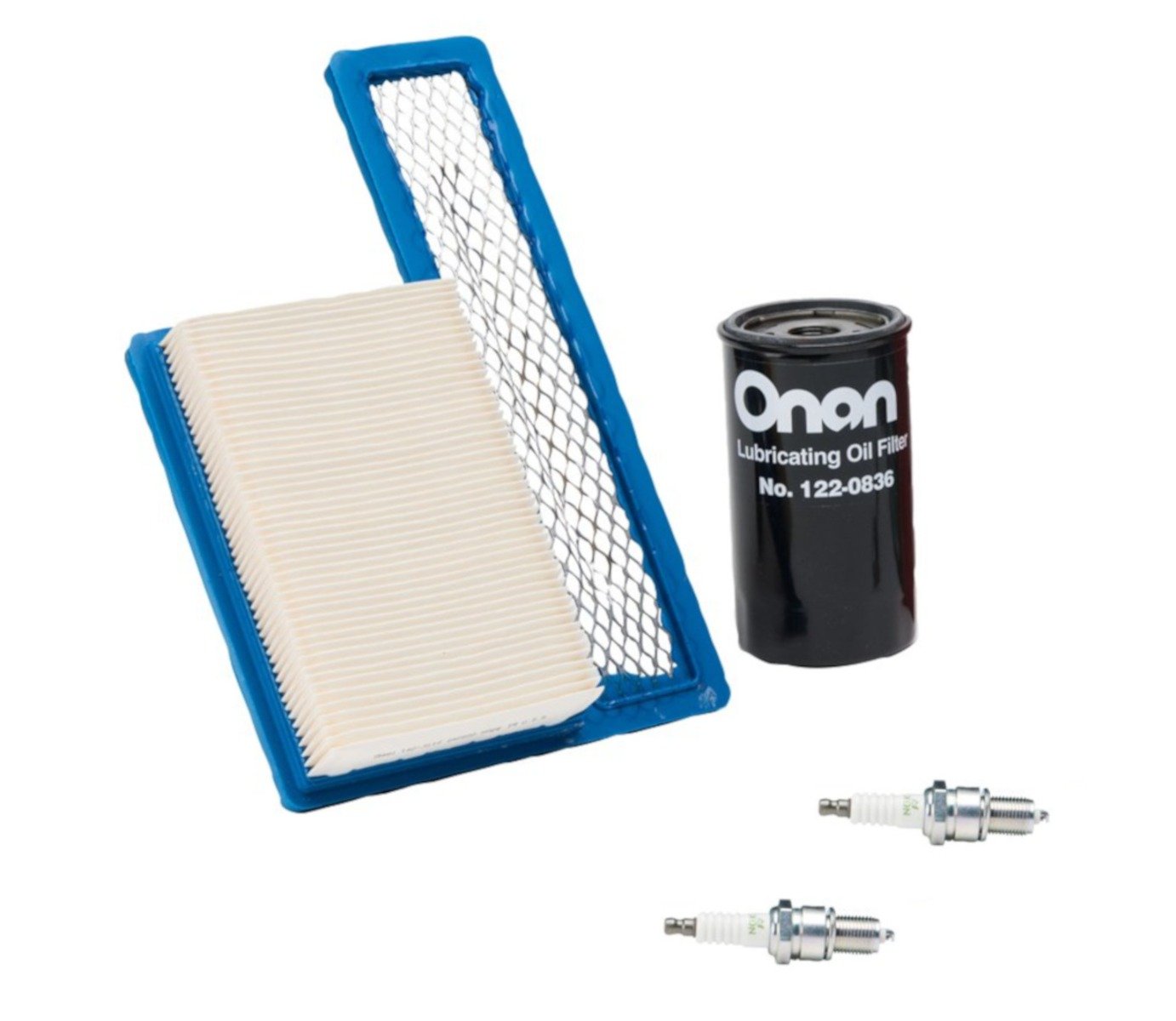 The Cummins Onan Maintenance kit/ Tune up kit is designed to provide you with the necessary replacement parts to perform routine maintenance on Marquis Gold 5500 & Marquis Gold 7000 gasoline generators. Fits Onan HGJAB, HGJAC and HGJAE gas generator models. This Kit contains 7 parts: (1) 1403116 Air Filter , (1) 122-0836 Oil Filter (2) 1671638 Spark Plug