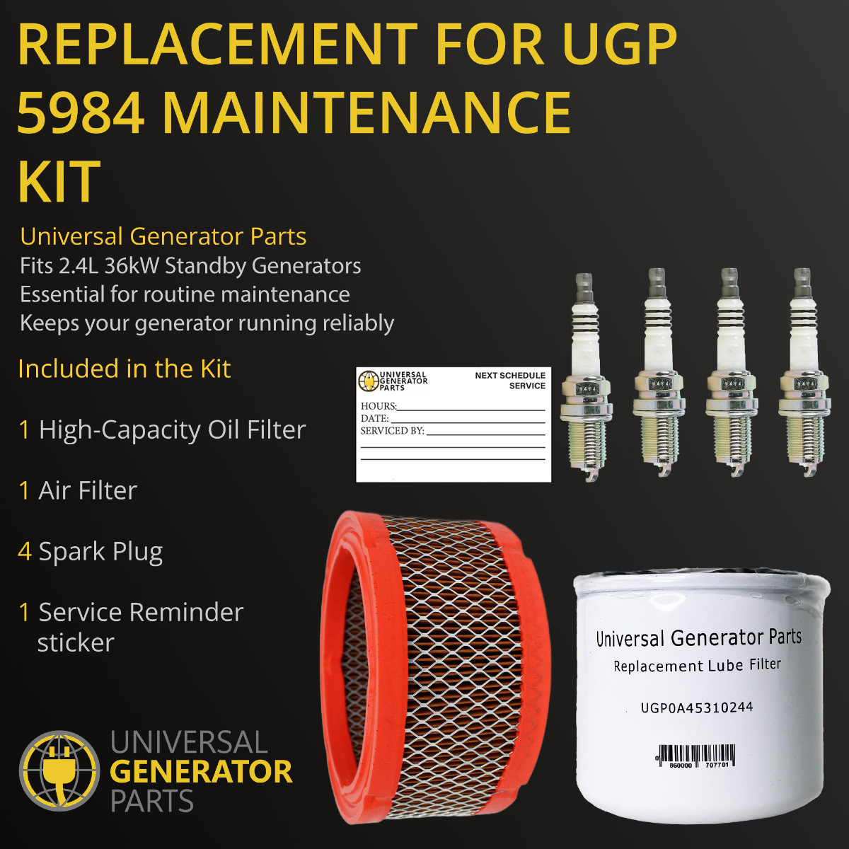 SERVICE KIT: Includes all the essential replacement parts needed for servicing your 2.4L 36kW standby generator, designed to provide a comprehensive solution for easy and efficient Replacement. Ideal for ensuring maximum performance and long-term reliability.
