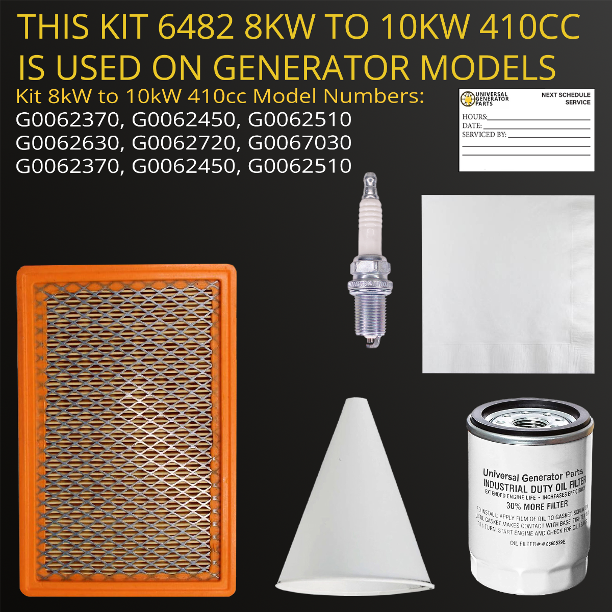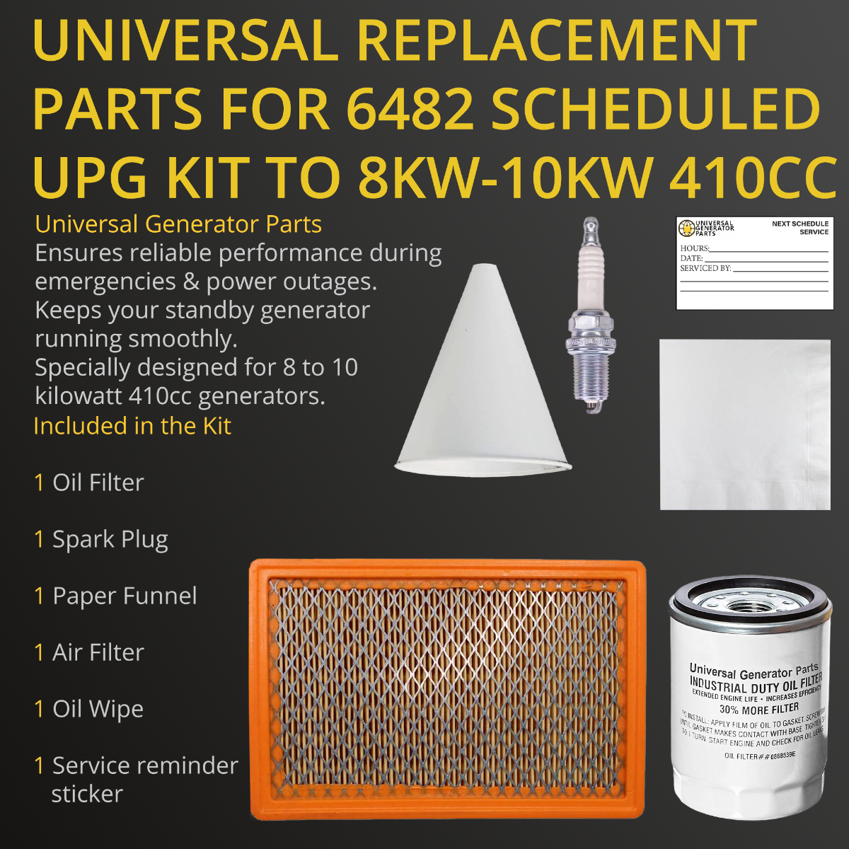 Universal Replacement Part-6482 Replacement Kit for 8-10kW 410cc Home Standby Generators – Complete Service Kit for Engine, Oil, Air Filter, Spark Plug, and Fuel System